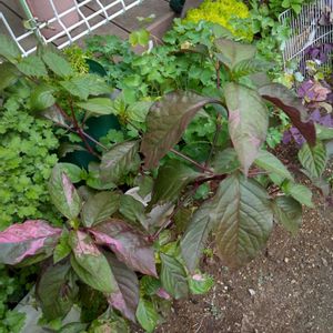お早うございます☀️ 今日も残暑厳しいです 去年お迎えしたアルテラナンテラ属(赤葉センニチコウ) こぼれ種で発芽🌱かも? 来月頃には白いお花期待したいけど🤔 購入した去年の株より🌿が大きく斑入り模様は出てますが今まだ暑いからか葉の色がなかなか本来の赤葉になってないです🤣