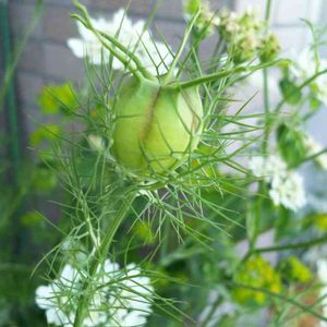 ニゲラの種です。 ツボミは、このミニ版って 感じです。 中はどうなってるのか〜 宇宙人の頭👽みたい😅 観察中です☺️ 不思議😊不思議😆