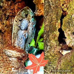 功山寺境内にある🌳にある穴🕳の中に仏像が納められ、写真🤳撮るのも小さな穴🕳の仏様を、どうやって納められたのか、不思議です。右の穴🕳です。