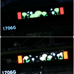 今月6月のJR山手線の後ろ表示です。 やはりこの花ですね。 実際の表示の花は線が入らずに、らしく見えます。