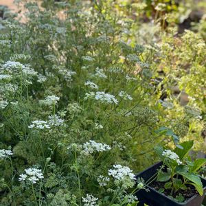 昨年鉢花で購入し育てていたオルレアホワイトレースのこぼれ種が発芽して開花しました😊 昨年花が終わってから枯れるまで隅っこに放ったらかしていた付近にたくさん咲いています😅 ここは日陰で固い粘土質の土なのによくぞここまで成長してくれた🥰 本当に強い子✨たくましい❗️来年は更にたくさんのお花に会えるといいな✨