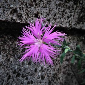 石垣の前に「カワラナデシコ」一輪、picしてと囁いていました。 パチリ