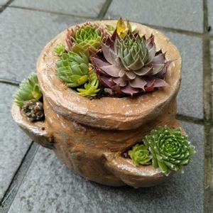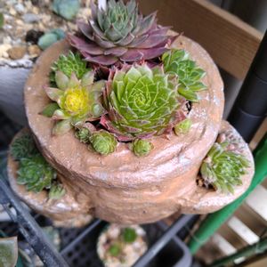 本日2投稿目 ありがとうございます❤️ rikaraさん♡からのセンペル届きました~😊 大切に育てますね😘 ①最近 鉢を何処かへしまい込んでしまい…鉢がない😭 ➡️やっとひとつだけ見ぃ〜つけた💡 以前作ったテラコッタ鉢にイン‼︎ ⬅️入りきらなかったセンペルサン三兄弟は 黒ポットへ😅 ②ぎゅうぎゅうに植えちゃった〜 ③🏷️ストロベリーフィールド 🍓みたいに赤くなるのかしら?