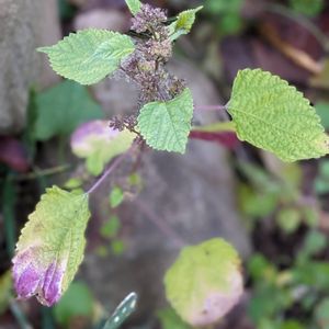 こちらは今朝 池の端から外れて もう一株あった桑草… 胴体が抜けてお化け桑草になっちゃった!😱 今迄だったら即抜いていた桑草… これからは?? 葉っぱも色付いて可愛い装い…😅 🏷グリーンアクセサリー♪…に