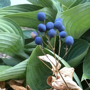 こんにちは〜☂️ 久しぶりに小雨で庭の水やりもお休みです♡。 美瑛のお友達から頂いた 『類葉牡丹』ルイヨウボタンの実が綺麗な紺色になりました♬。 お花はとても小さくて目立たなかったけれど まん丸の青い実は存在感が有ります💕