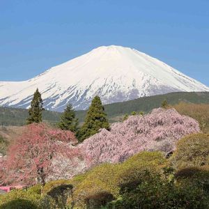 今朝の富士山と、枝垂れ桜 (2023 4.3. 7:21 小山町大御神 富士霊園より)