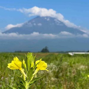 今朝の富士山と、待宵草 (2023.7.23 7:26 御殿場市より)