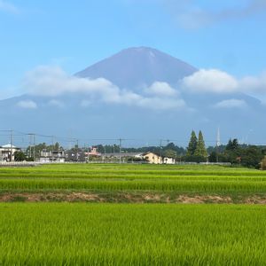 今朝の富士山と、御殿場コシヒカリの田んぼ (2023.7.24 6;28 御殿場市より)