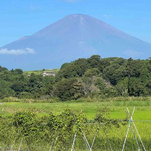 今朝の富士山と、山芋畑 (2023.7.30 7:45 小山町足柄千保より)