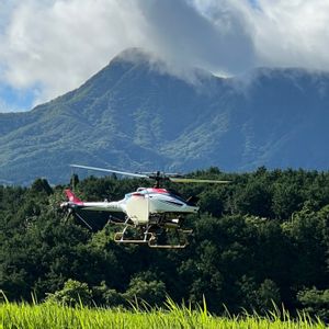 田んぼの稲の消毒に、小型ヘリコプター🚁が飛んでます 小山町古城地区で、JAの推奨で地域全体の共同作戦てす ドローンも活躍して、遠隔操作で作業が楽になりました