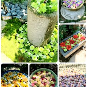 こんにちは😊 水琴窟の花手水です💐 水を垂らすと、とても良い音色が聞こえてきたと家内が申しておりました😸