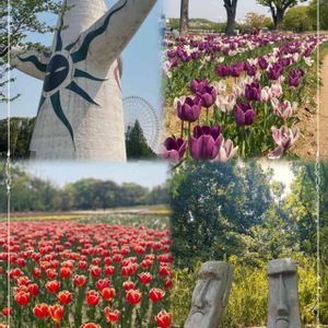 見つけました♪ モアイ見たさに万博へ💪🏻 GSの先輩が教えて下さった、足湯の近くの小さな広場の奥の方に!! おっきなモアイが🤣🤣🤣 行ってきましたょーーー🗣📣 連れて帰りたかった…..🫢 そして、自然文化園のチューリップの花園🌷ここには載せきれないほどの多数のチューリップがあり色とりどりでとてもキレイでした❤︎ 5日程前に行きましたが、もう少し早く行ってもよかったかな。。。 もうそろそろ見頃は過ぎてきたかな🤔
