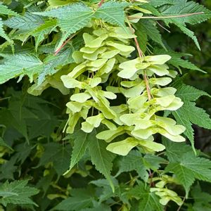 ホソエカエデ ムクロジ科 カエデ属 ウリカエデ節 若木の樹皮 🍃☘️もウリハダカエデに似ているが 花序が長くて始めは斜上し次第に垂れる、果柄は細く長い。 ❗️葉柄が赤みを帯びる❗️ 四国では 徳島・高知県に分布する