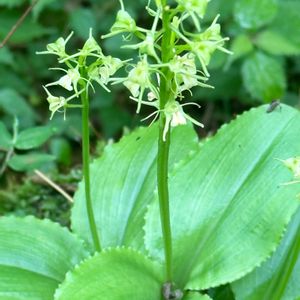 クモキリソウ ラン科 山地の林内林縁、林道縁に生える 💐🌼緑1色。 萼片×2+ 側花弁×2=4 蜘蛛の足は8本 半分に切ると 4本になる。似るとはいえ残酷な名付け 日本全国に分布する 高知市 工石山より