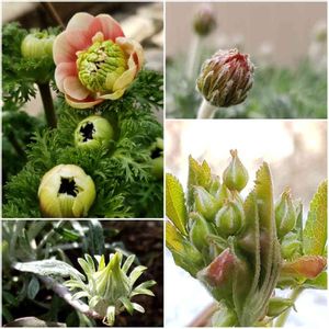 うちの蕾たち♪v(*'-^*)^☆ 左上、お馴染みアネモネ凛々花。近頃少しお花の雰囲気が変わってきたような…開きかけのコも少しピンクが濃くなってきたかな☺️ 左下、シルバーリーフのガザニア レモンスイフト。きれいなレモン色のガザニアです🍋 右上、大好きなローダンセマム アプリコットジャム。蕾の中から少~し色が見えてきました。ほんと、焦らされてます😂 右下、黄モッコウバラ。 今年も今のところいい感じ💛 楽しみな蕾たちでした~😊