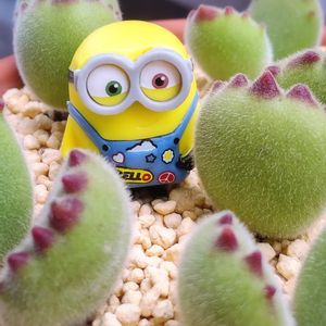 我が家のミニオンでも載せときます(*´︶`*) 手前のサボテンは以前に ご近所様からいただいたモノ♡ 寄せ植えBOX 箱庭