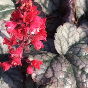 今日のお花 ヒューケラ 赤い花とシルバーグレーの葉っぱが いい感じ。