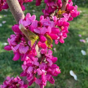 今日のお花 ハナズオウ 鮮やかなピンク色のお花が緑に映えます。