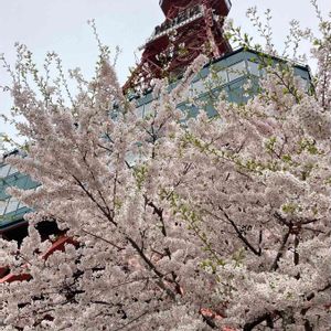 テレビ塔のふもとの桜🌸 満開で綺麗(⑉︎• •⑉︎)♡︎✨