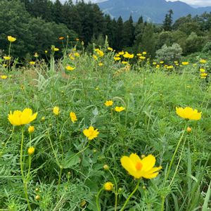 道の駅しなのにて キバナコスモスかな? 高原なのでほんの少しだけですが 暑さが和らいでいました😮💨