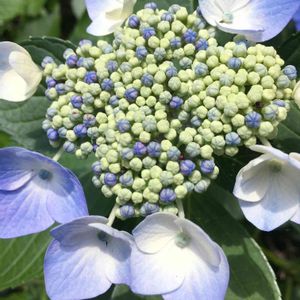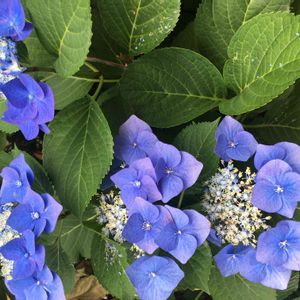 20210615散策で見かけたアジサイの花が,青くて素敵でした。酸性の土壌だとアルミニウムが取り込まれ,花が青いと言う。