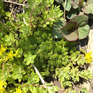 コモチマンネングサ・メノマンネングサ はたまた、ツルマンネングサ⁇⁇ 葉っぱの形が違うと言うのはわかるのですが、見れば見るほど、分からなくなってきます💦 それとも一種類だけでなく何種類か集まっているのかしら?