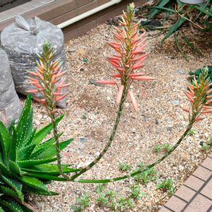 木立アロエ、どの様な経緯でここに生えているのか分かりませんが、たまにオレンジ色の花が咲いていてキレイです。 カッコイイですが、大きくなるし成長が早いので、うちでは育てられないな。