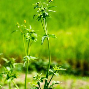 田んぼに沿った道路脇のセンダングサ 私の自宅の周りはアメリカセンダングサ(茎が紫色)ばかりですが,安濃の田んぼの脇には,センダングサ(茎が緑色)が咲いていました。まあ,どちらもヒッツキムシになって靴下とかに刺さるのは同じですが。