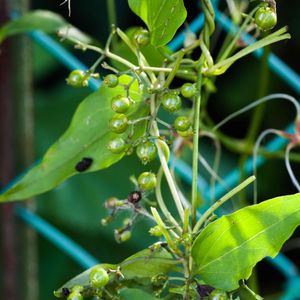 フェンスに絡んだヘクソガズラが実を付けていました。 細めの植物ですが,結構立派な実を付けるんですね。そのうちに茶色から褐色に色づいてくるのでしょう。要観察です。