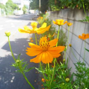 訪問先の街の道で見たキバナコスモス 丁度綺麗に咲いていました。朝9時ころです。早く過ごしやすい気候になって欲しいものですが,明日には台風がまた来ますね。被害が無く(軽微)通り過ぎることを祈りましょう。