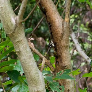 アカメガシワの樹液に集まる虫たち 田んぼの畦沿いに森があり,アカメガシワの樹に樹液を吸う虫たちが集まっていました。望遠で寄ってみたのですが,樹液酒場の賑わいが伝わるでしょうか?お客さんは,ゴマダラチョウ,カナブン,クワガタ,が見えます。