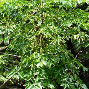 沢山の実をつけたセンダン 郊外の里山と田んぼの境をGS散歩、緑の玉の様な実が沢山ぶら下がった木を発見。しらべてセンダンでは、ないかと思います。実が数珠つなぎ、に並んでいておもしろいです。