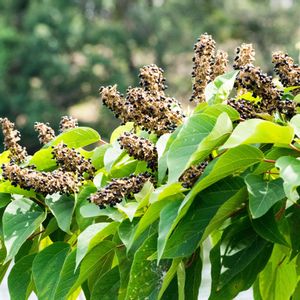 アカメガシワの黒い実 公園の池の畔に沢山アカメガシワが生えて居ました。こぞって黒い実を沢山付けていて,とても綺麗でした。図鑑では,葉にキレコミがある写真が載っていますが,私の身の回りは,この様にシンプルな形の葉ばかりです。種類があるのでしょうか?