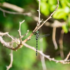 オニヤンマが突然近くに止まりました。 写真を撮りながら芝生の広い公園を散歩していると,突然近くの枯れ枝にオニヤンマが止まりました。ちょっと焦ってしまい,ピントが甘いです。この1カットだけですぐに飛び去ってしまいました。トンボと蝶が子どもの頃から大好きですので,オニヤンマのオスで間違いないです。立派です。こんな感じで下垂して止まります。