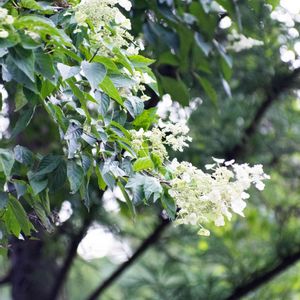 ノリウツギの大木と白い花。 近くの山のダム湖の沢沿いに白い花を咲かせる大きな樹がありました。巨大な木だけれども,あじさいの花の特徴を持っていると直感で思いましたが,調べて見ると,ノリウツギとわかり,やはりアジサイの仲間のとのことです。