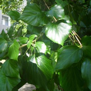 セイヨウキヅタの丸っこい葉 キヅタが巻きついた楠があるのですが、このあたりのキヅタのは、3裂でない丸っこい葉っぱになっています、同じ株でも違うところはまた違う形の葉です。なにか法則があるのかと思いました。