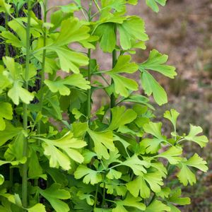 イチョウの幼木の多片葉 大きなイチョウの木の下で小さな1mほどのひこばえが育っています。そこの葉っぱは,非常に複雑な切れこみが入った多片葉になっています。その理由はまだ解明されていないようです。