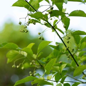 ナンキンハゼに実が付いてきました。 緑色の丸い実が,目立つようになってきました。秋には,葉は紅葉して,実は白くなる,予定ですね。