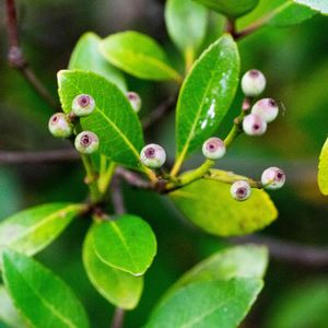 シャリンバイの実 初夏に白い良い香りの花を沢山つけたシャリンバイの木に,ピンクの直径5mmくらい?の実がついていました。秋には,濃い青紫になり,食べられると書かれています。なので食べてみた,と言う方のHPがあり,しかし,タネが巨大ですこし甘い肉がほんのすこし有るだけ,と書かれていました(^_^)。