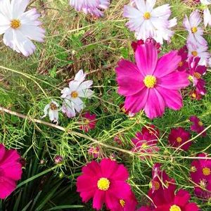 今日のお花、コスモス。 去年落ちた種から、ざっくばらんに咲いているのが好き。ウォーキングしていて、ふと足をとめたくなります。
