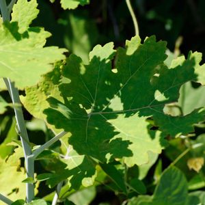 タケニグサの葉 複雑な形の葉っぱに,上の葉っぱの影が落ちてなおさら複雑な形に。フラクタルの図形とまったく同じだと思うのです。数学も自然の中に溶け込んでいる法則の一つだと分かります。