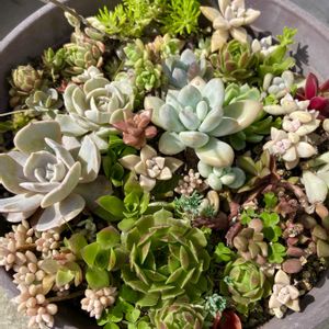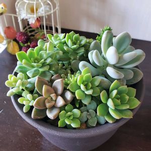 春頃に仕立て直しで出た端材的な葉や苗を無造作に入れたぽいぽい鉢、ほとんど手を加えず自然の成長に任せていたら(要するに放置…)いつの間にかいい感じの多肉丼になってました👏