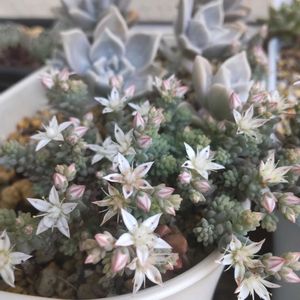 冷え込みが厳しくなりましたね🥶 日中はお日様出てても、空気が冷たい。 ❤︎ バラ咲きオキザリス🌹💕 咲き始めましたෆ.*・゚ 寒さにもへっちゃらですね!! ❤︎ 多肉植物のポイポイ鉢 ブロウメアナのお花が咲いています*ꕤ* ❤︎ ティテュバンス錦 ピンク色が出てきて、ホントはもっと可愛いお色なんだけどな💓 徒長してはカットして挿し、葉挿しで増やしやすい♡⃛