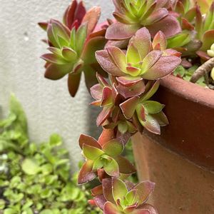 ポイポイ鉢から垂れてるクラッスラ 5年くらい前にご近所さんから頂いたコ 紅葉祭りかなーと思いながら眺めてます こういう垂れてる感じ、たまらなく好きです☺️