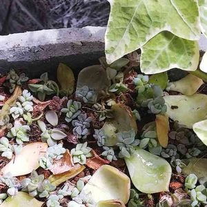 おはようございます😃 今朝のpicは多肉ちゃん達の取れた葉っぱを適当にポイポイ👋しただけの葉挿しプランターです♫ 暑さにも負けず屋外放置してるだけでこの賑わい✨勝手に寄せ植え状態になってる💕 お水もほぼあげてないけど蒸れも無く雨水で成長しています😮最近思うんだけど何だかんだ放置が一番ですね💦
