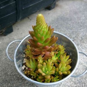 セダムのポイポイ鉢に 遊び心で入れておいた子持ち蓮華 根付いたな〜✨と思っていたら…今度は 花芽がついちゃいました〜(~O~;)