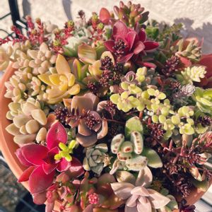 秋に夏を乗り切ったセダムや小さい苗を集め再生した土にポイポイと、とりあえず植えしていた鉢🪴 寒波も乗り越えてモリモリしていました😊 生命力あふれるこの子達は暑さ寒さも乗り越えてまた春を迎えてます🌸