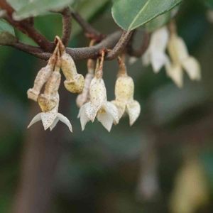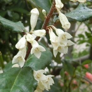 この花はナワシログミです。 淡いクリーム色の小さく目立たない花ですが、甘い香りが漂っています。 4〜5月稲の苗代を作る頃に赤い果実が熟すことからその名が付いたとか…。 日本・中国原産。 グミ科グミ属の常緑低木。