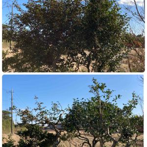 剪定シリーズ🪜 ナワシログミ(左) ヒイラギ(右) 風が通る 前の田んぼが見えるようになりました😊