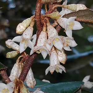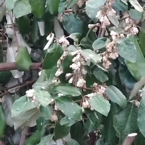 ナワシログミの花が咲き始めた まだ殆どが蕾だけど… 開花してもあまり綺麗な花でもないから、今くらいの方が清楚さを感じるかも⁇😆 ぶら下がる様子は可愛いです♡